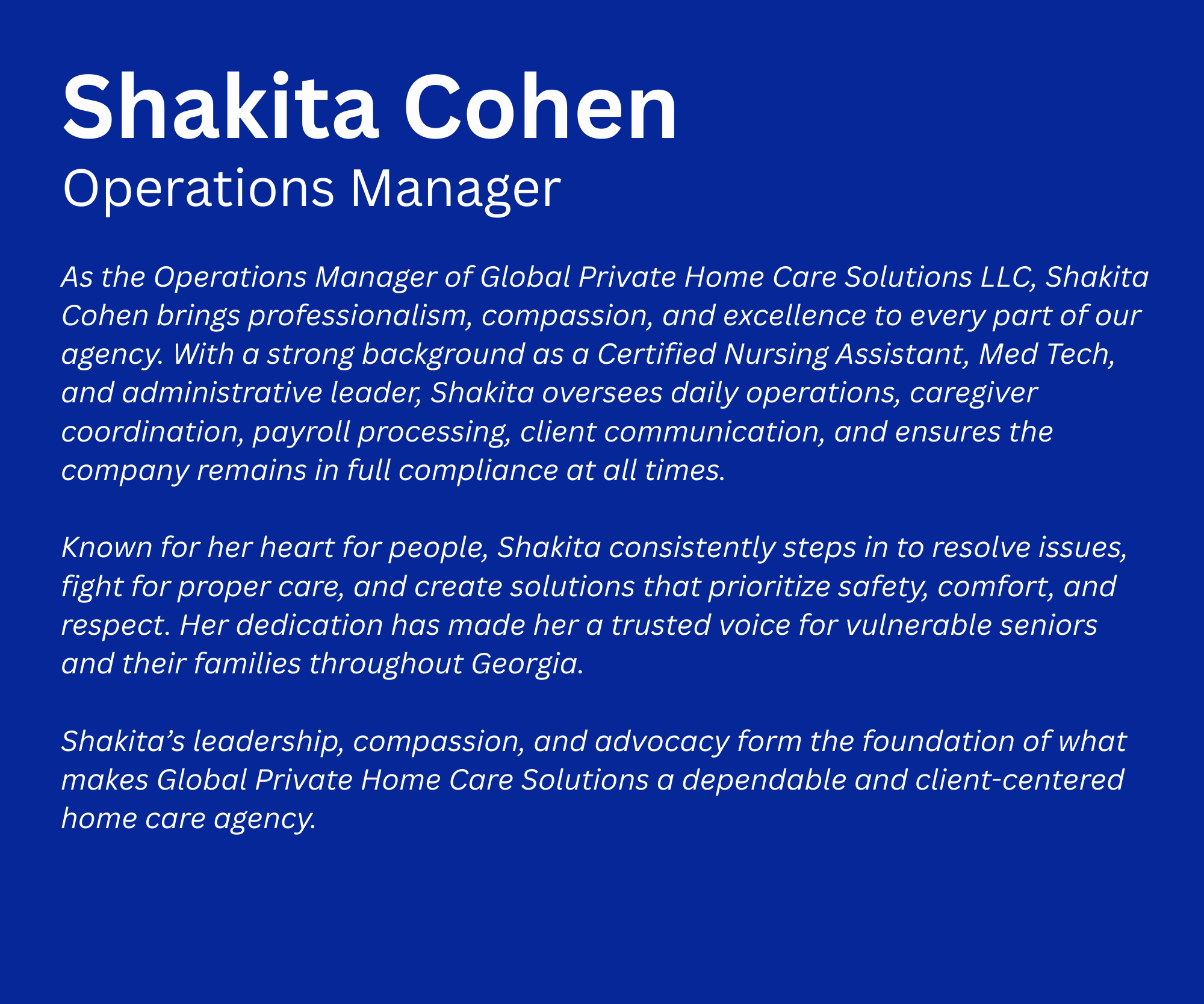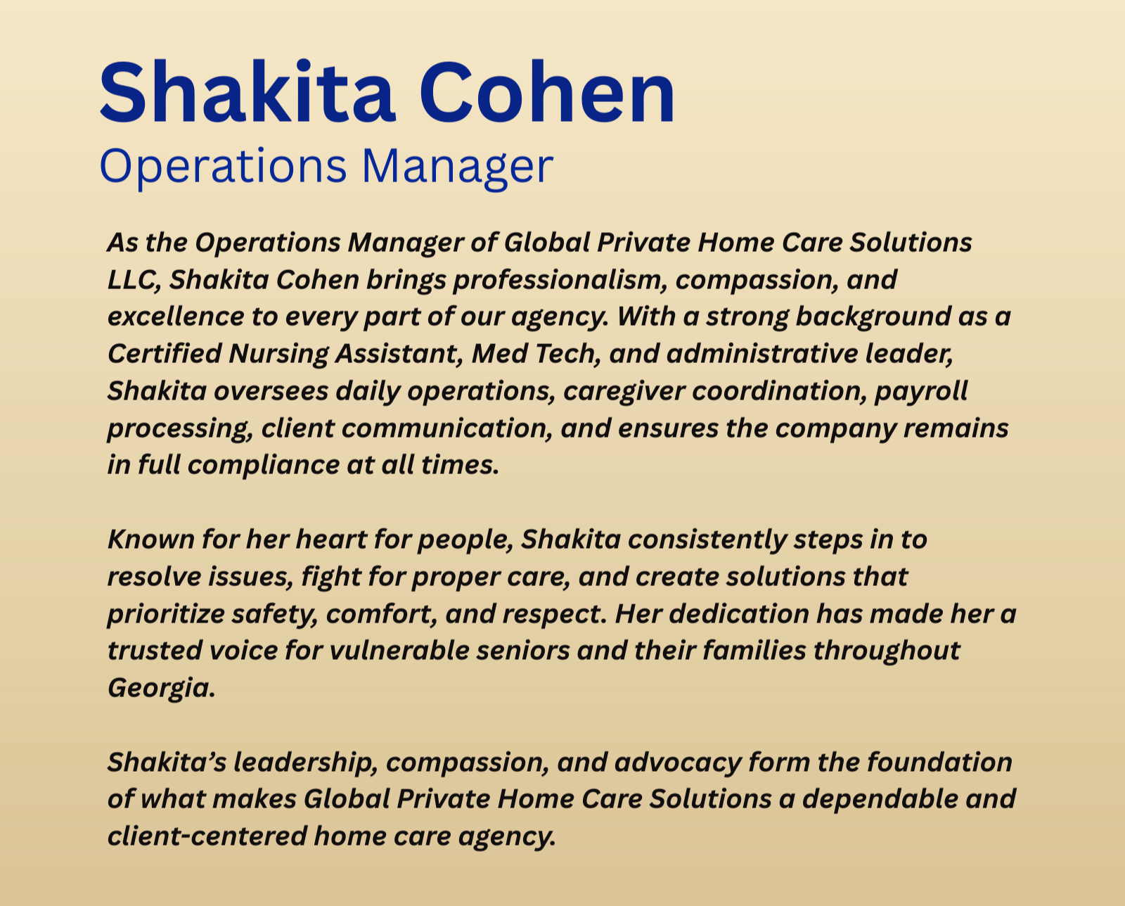 Global Private Home Care Solutions, LLC is a trusted provider of home care services in Atlanta, Georgia, serving the elderly and other people needing supportive care at home.